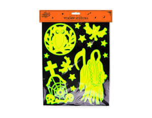 These packs of Glow In The Dark Halloween Window Stickers contain an assortment of Halloween themed stickers that include ghosts, pumpkins, bats and much more.