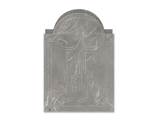 Constructed from durable cement and designed to resemble a grave stone, each candle has a 7hr burn time with a subtle pumpkin fragrance. The grave stones has engraved details and a slogan on either side.