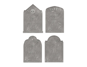 Add some spooky ambiance to seasonal displays with these Grave Stone Candles.
