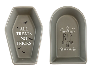Add a touch of spooky elegance to your next gathering with our Grave Stone Ceramic Dip Bowls. These bowls are perfect for serving dips, sauces, and other small bites. Made from high-quality ceramic, they are durable and easy to clean. Elevate your entertaining game with these unique and eye-catching dip bowls!