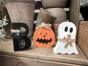 Halloween Boo Character Block Set of 3 Wooden with String Accents