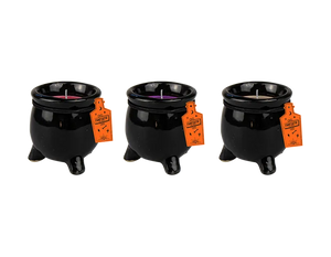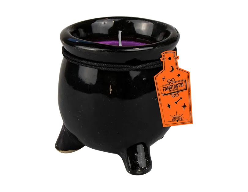Halloween Cauldron Fragranced Candle Set the mood with these cauldron candles, crafted from strong and sturdy stoneware each cauldron is filled with a 2% fragranced candle. Three assorted candle colours. Measuring...
