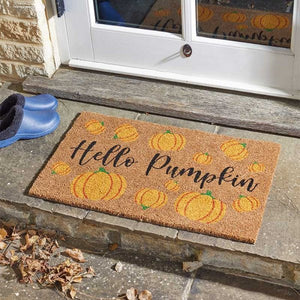 Hello Pumpkin Autumn Decoir Door Mat Durable natural coir upper removes mud and dirt from shoes Slip resistant PVC backing Easy to clean - simply brush when dry Suitable for indoor...