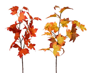 Single Autumnal Orange Polyester Leaves Spray - 90cm