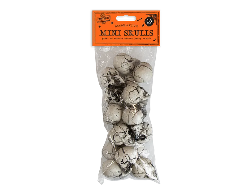 These packs of spooky decorative mini skulls are perfect for halloween parties and events.