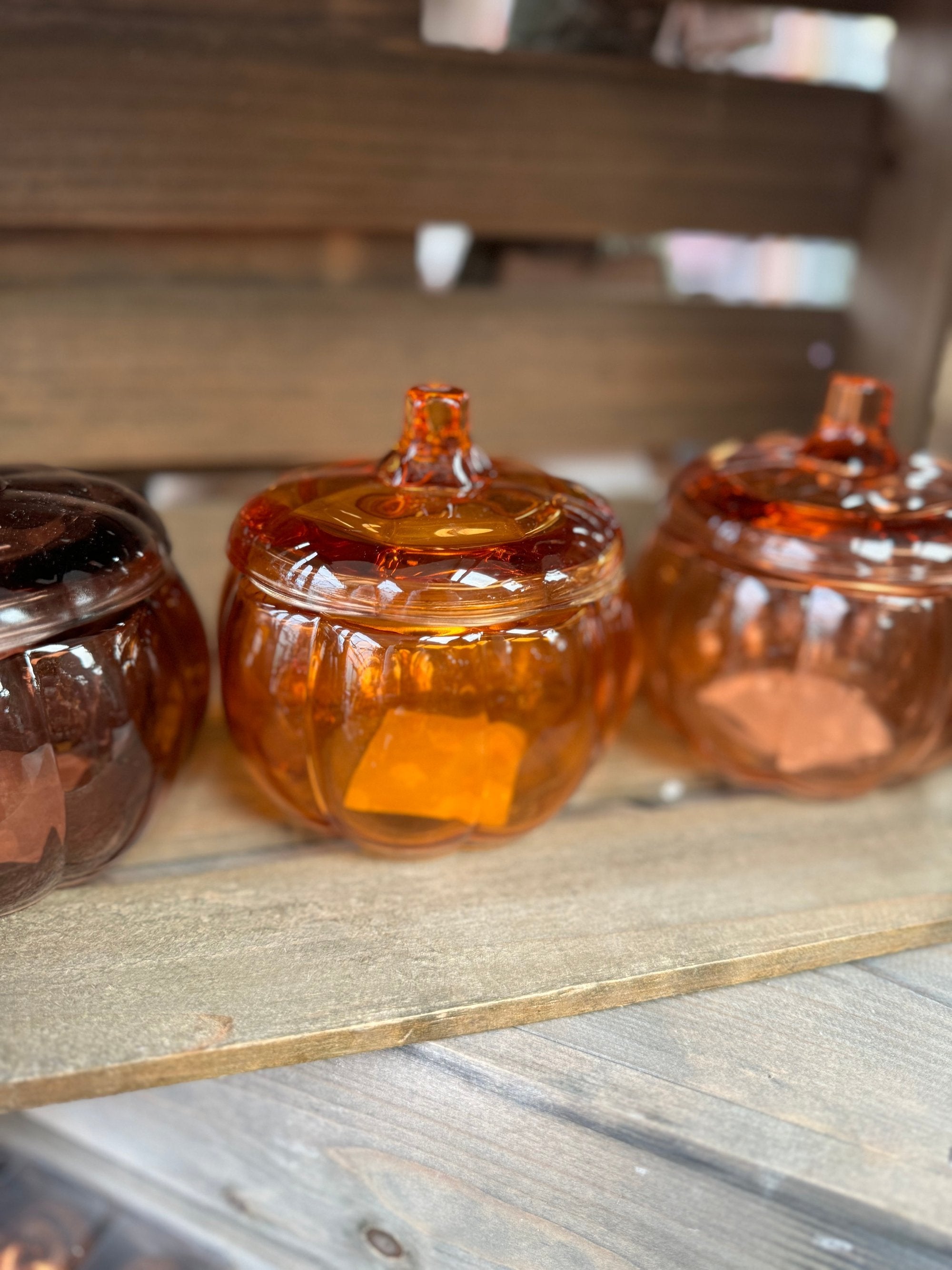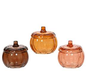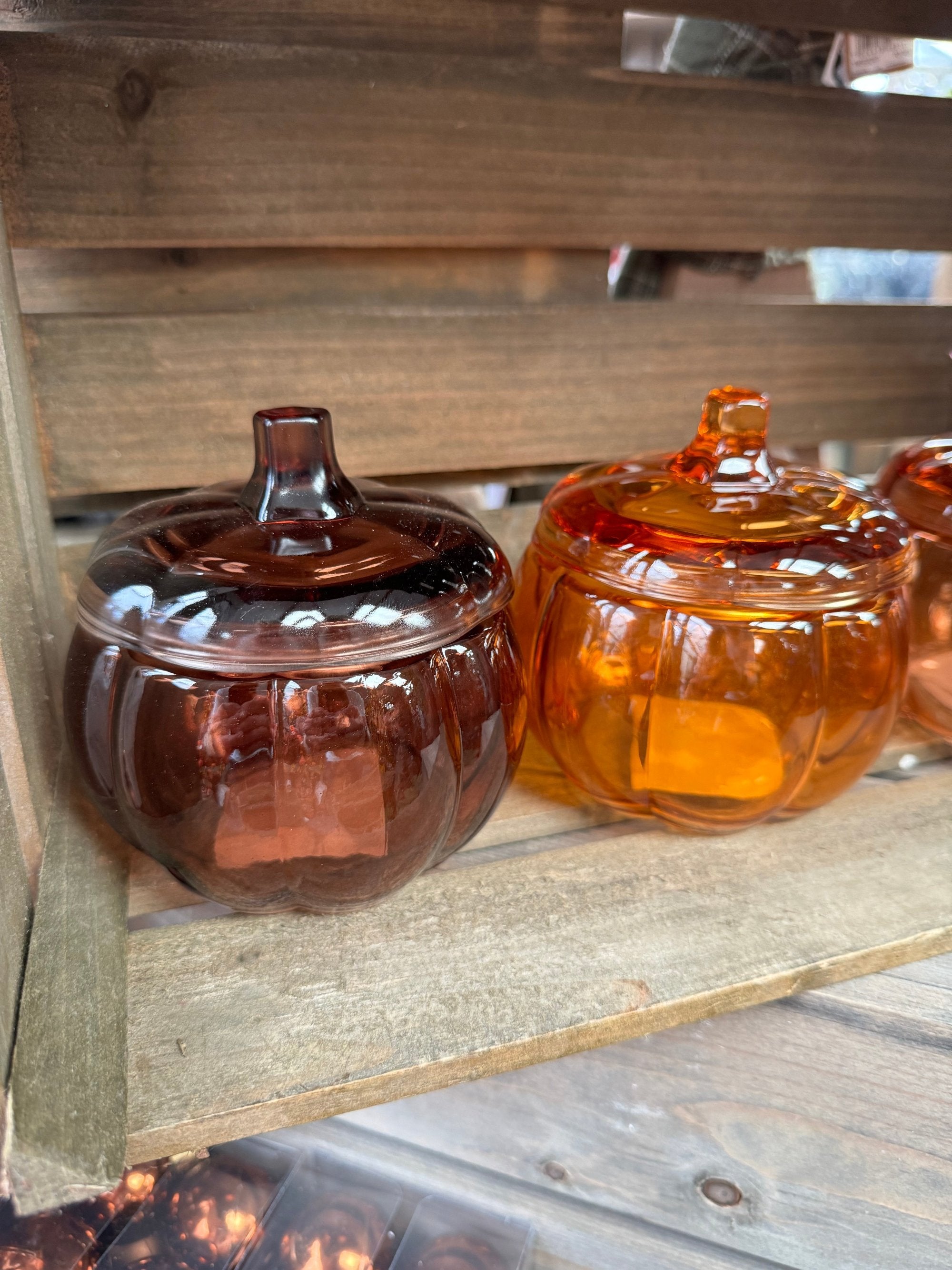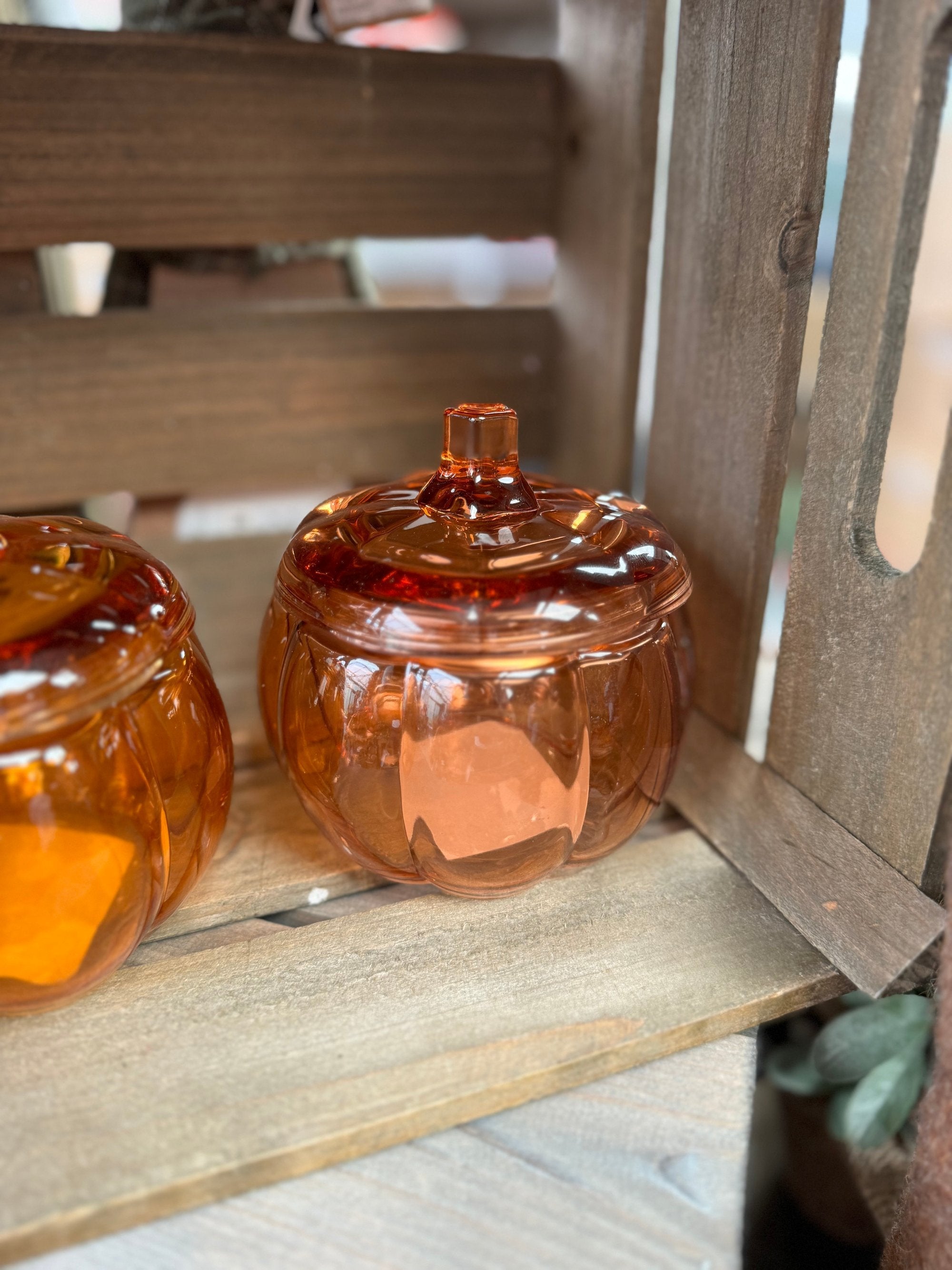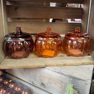 Large Glass Pumpkin Jar with Removable Lid - Tea light Holder Trinket Pot 12cm