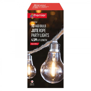 Premier - 10 Bulb Jute Rope Party String Lights 4.5m Lit Length