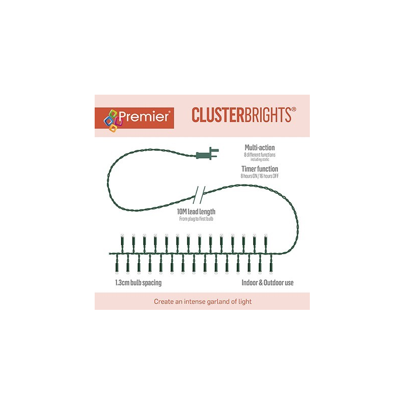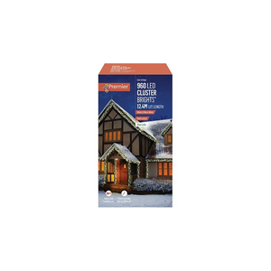 Premier Clear Cable 960 Cool & Warm White LED Multi Action Christmas Cluster Brights String Lights