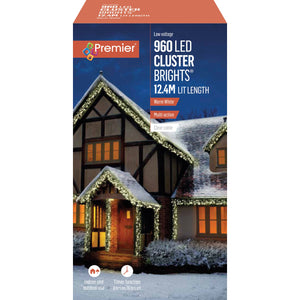 Premier Warm White LED Multi Action Christmas Cluster Lights Cluster Brights Clear Cable
