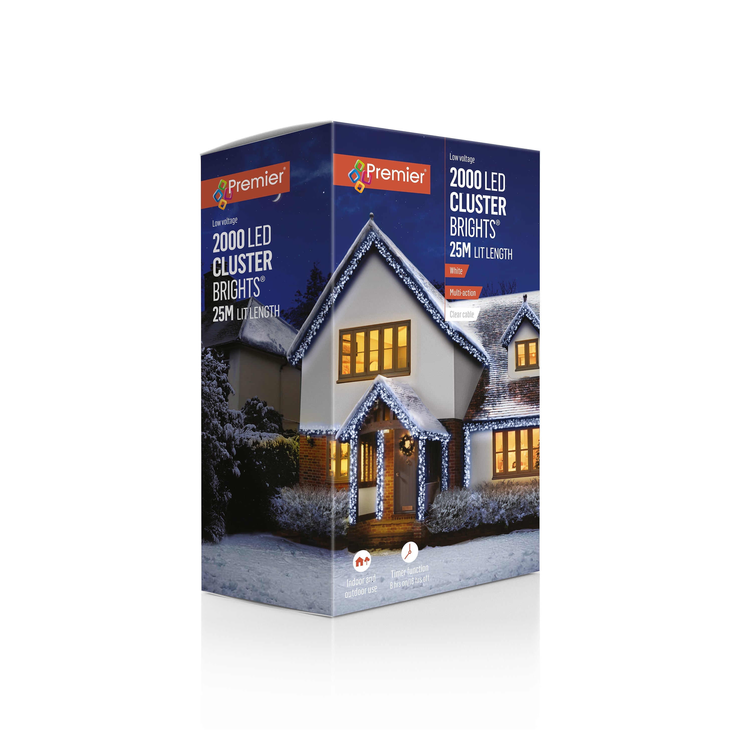 Create a magical holiday ambiance with the Premier Warm White LED Multi Action Christmas Cluster Lights. These bright, warm white LEDs on a clear cable offer versatile multi-action settings to enhance your festive décor. Ideal for both indoor and outdoor use, they deliver a sparkling, elegant glow that transforms any space into a winter wonderland. Perfect for adding warmth and charm to your celebrations.