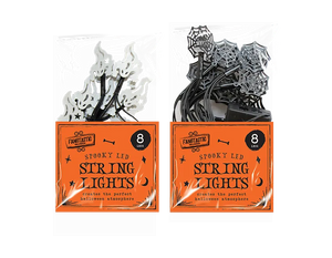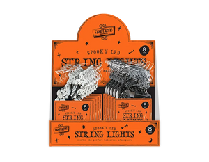 These string lights feature battery powered LED lights (x8 warm white in colour) with a Halloween themed casing (double faced, so light can be seen from either side).