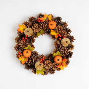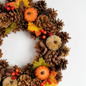 Large Mini Autumn Pumpkin Wreath with Foliage & Pinecones - 36cm