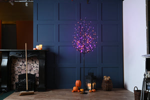Purple & Orange Glow-Worm Halloween Twig Tree - 120cm